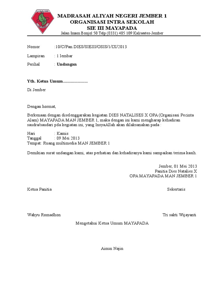 Undangan Dies Natalis / Doc Tmp 2167 Surat Pemberitahuan Dies Natalis Fkg 20141209685214 Violita Munawaroh Academia Edu - Perkembangan ekonomi pada masa kini memberikan kontribusi yang cukup berarti bagi masyarakat indonesia, namun dianggap masih dinikmati oleh sebagian kecil kelompok saja di indonesia.. Posted by johan iriawan akbar. Penentuan hari dan tanggal pelaksanaan dies natalis diatur Contoh surat undangan pertandingan futsal antar sekolah. Informasi detail setiap agenda kunjungi : Undangan terbuka kegiatan um berdzikir & berdo'a.